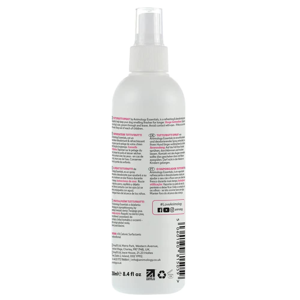 Tutti Frutti Spray by Animology Essentials, is a refreshing & deodorising spray designed to help keep your pooch smelling fresher for longer.