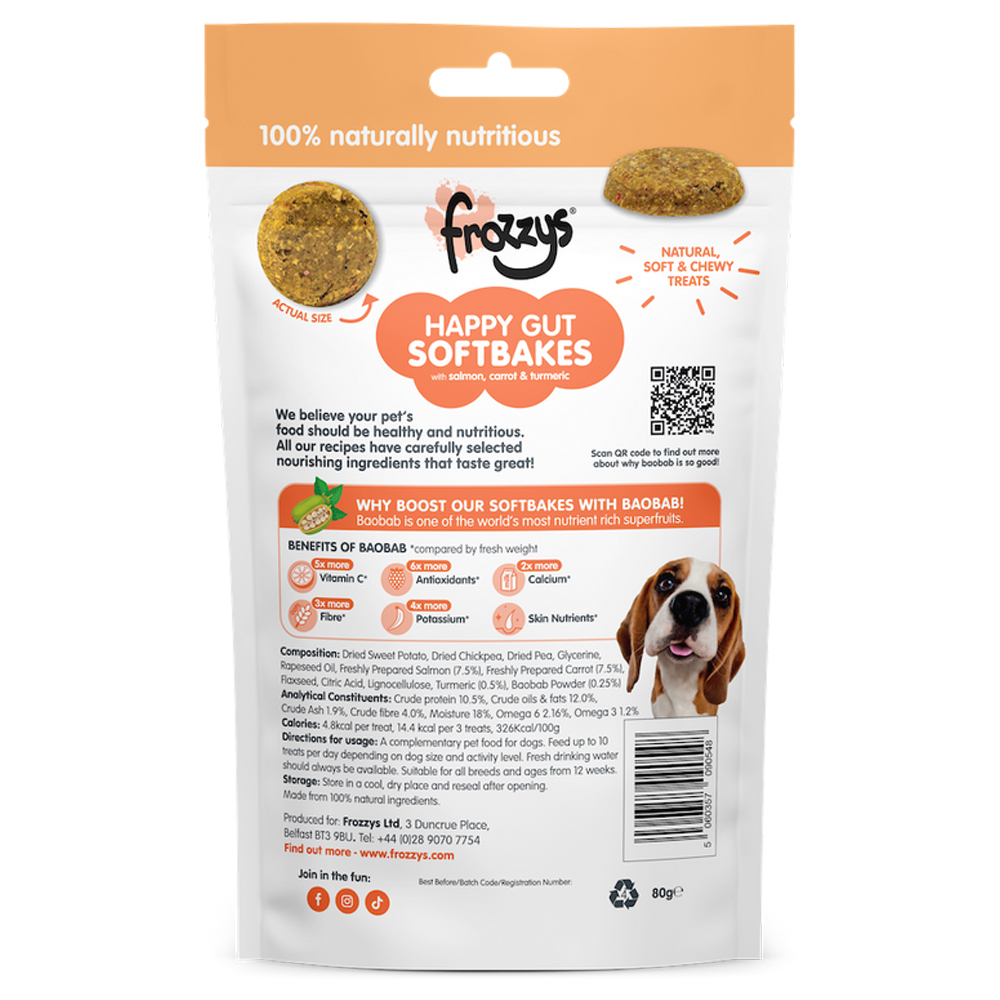 Frozzys Happy Gut Softbakes Dog Treats Salmon, Carrot and Turmeric