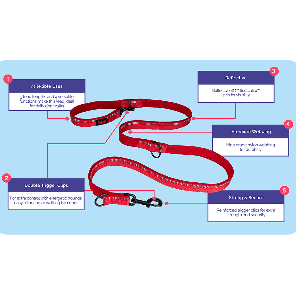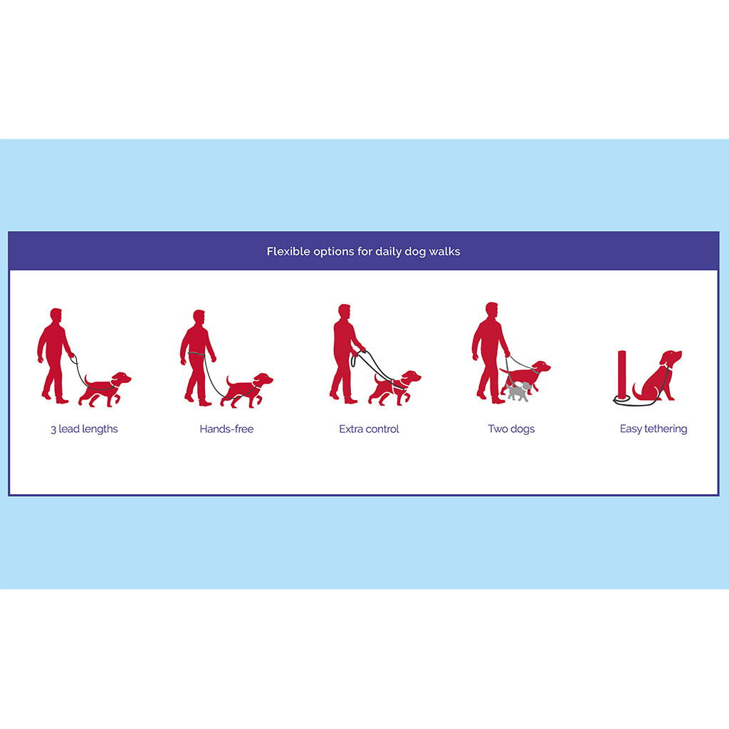 Super versatile double ended dog lead with multiple attachment options to suit a variety of situations