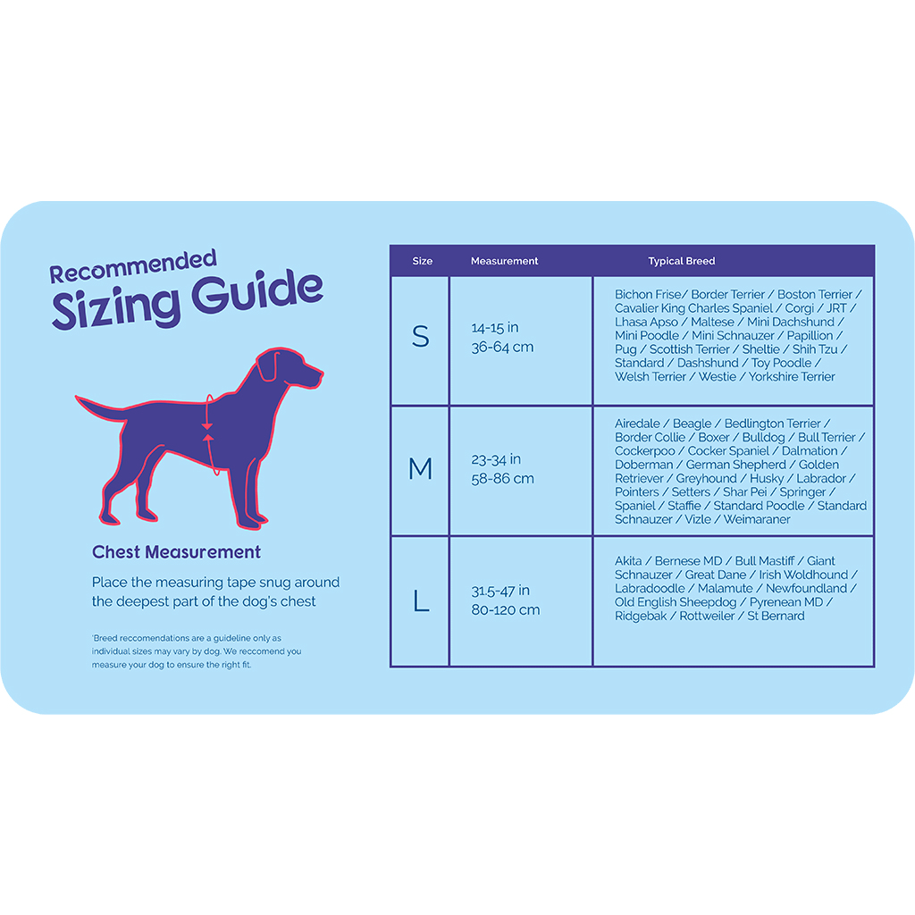 Please measure your dog BEFORE ordering and select the correct size from the sizing guide