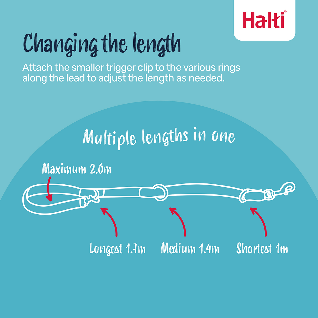 Crafted from lightweight, durable webbing with soft padding, the lead is gentle in hand yet strong enough to stand up to daily use, whatever the weather. Whether you’re adjusting the length for loose-lead walking or pairing it with a Halti Headcollar or Harness to help stop pulling, this lead adapts to your needs.