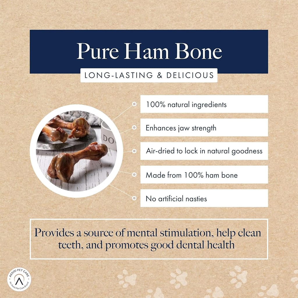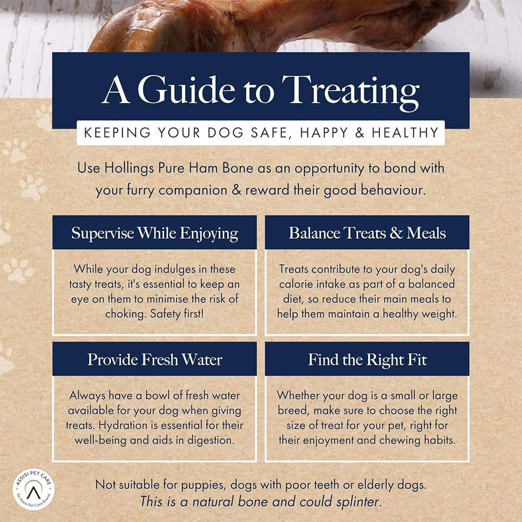 Hollings Pure Ham Bones are a 100% natural, long lasting, high protein dog treat, satisfying your dog’s natural urge to chew