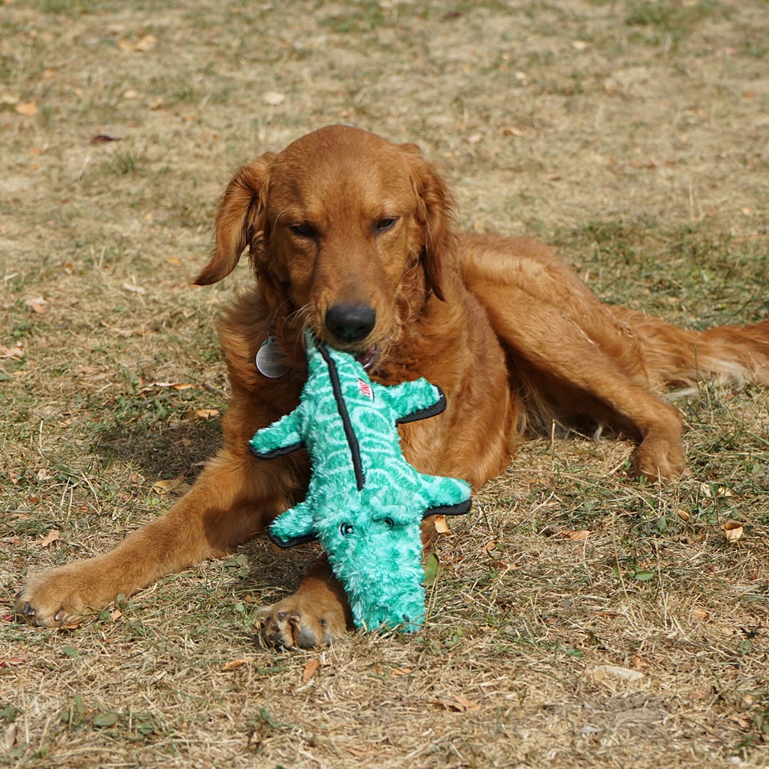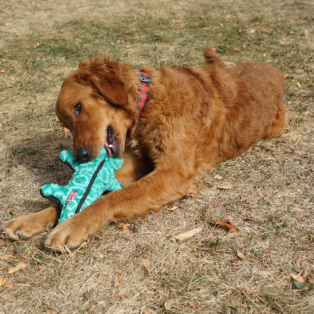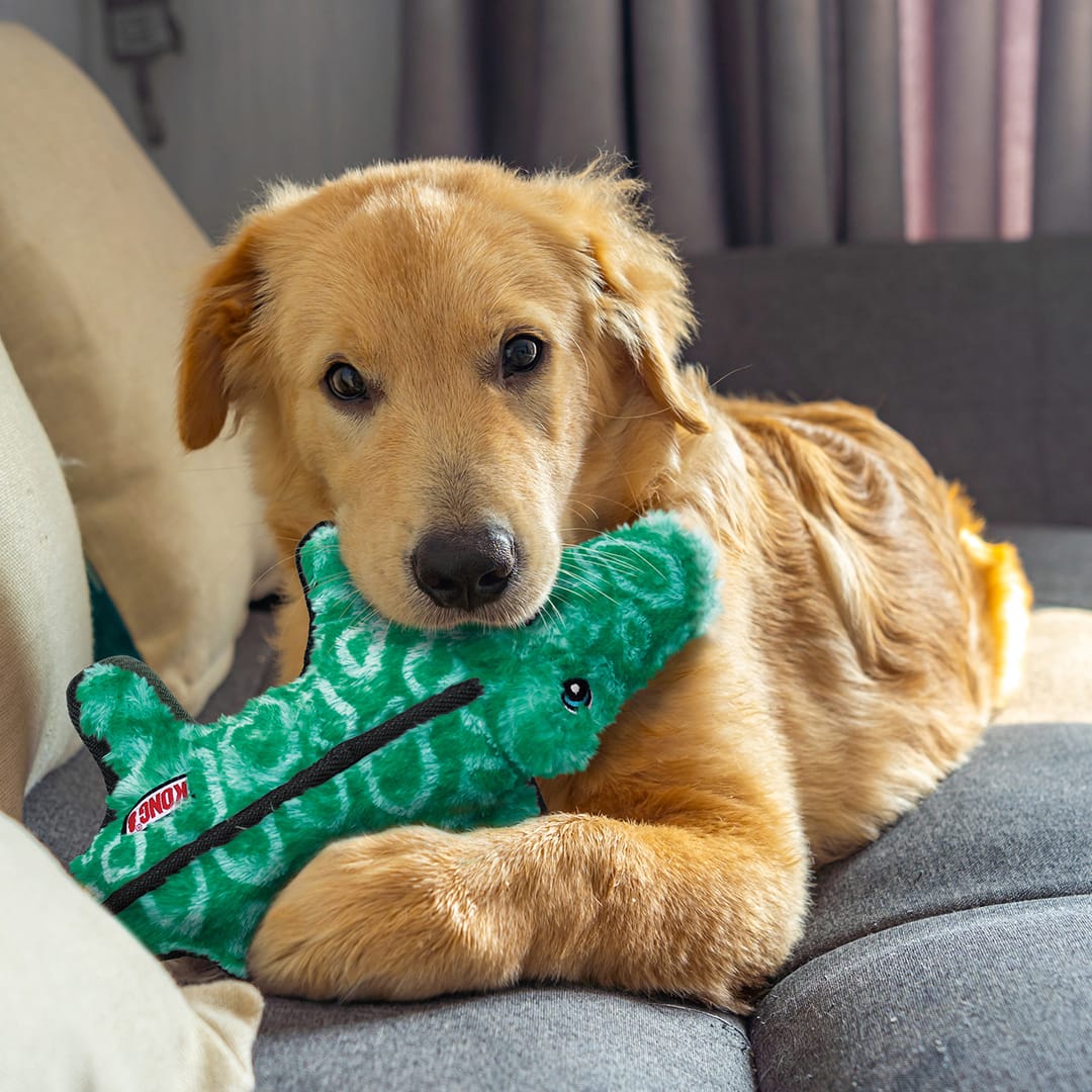 Don’t let the snuggly plush and cute gator grin fool you, this guy’s built for long-lasting chewing and shaking instincts with KONG Ballistic fabric beneath the fuzz—plus a squeaker and rattle that keeps the fun going.