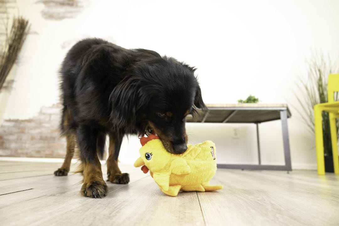 KONG Layerz Forage Hen adds a three-dimensional challenge to your dog’s snuffle-time fun! Hide your dog’s favorite treats in the pockets between quilted layers of this hen’s feathers then watch them use their natural foraging instincts to find each one. Crackle material and squeakers add excitement as dogs sniff, snack, play, and shake. Layerz Forage toys are perfect for adding enrichment and mental stimulation to your dog’s daily routine. Ideal as an alternative puzzle toy for dogs who prefer plush toys.