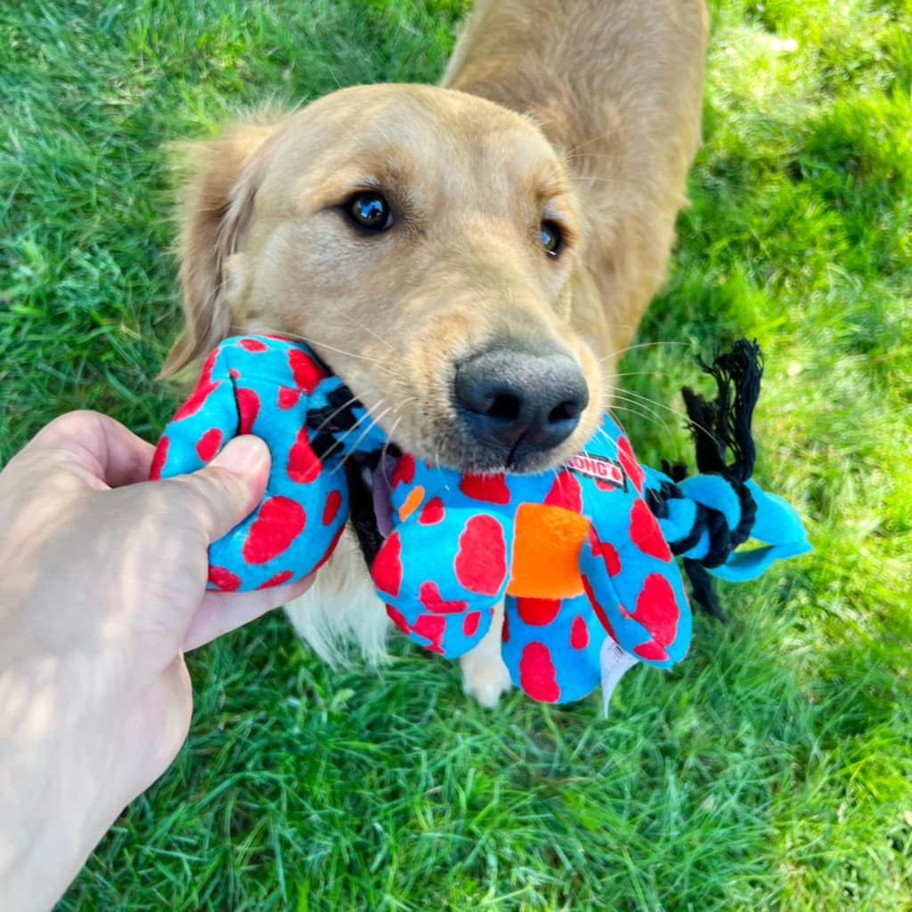 KONG Signature Dynos have a stretchy, strong fleece rope spine from head to tail, boosting their strength during tug-and-shake adventures.
