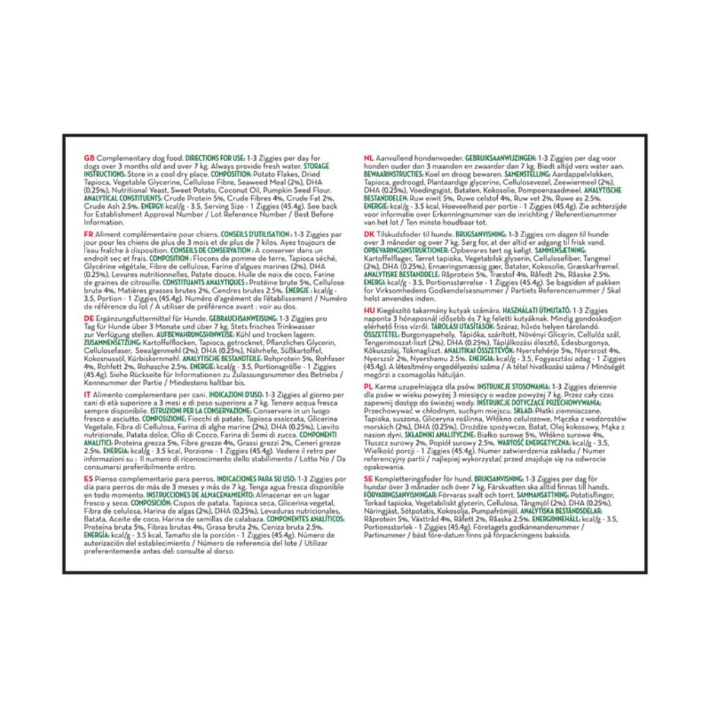 Med/Large: 1-3 Ziggies per day for dogs over 3 months old and over 7 kg.