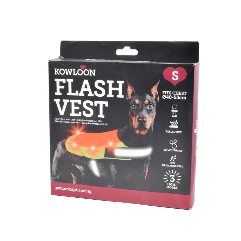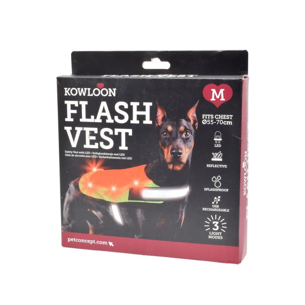 The Kowloon Safety vest with LED keeps your pet safe during night time walks. Two Tone Hi Vis Orange and Yellow reflective vest, with a bright illumination, your pet will be visible from far away so drivers can see him/her at night.