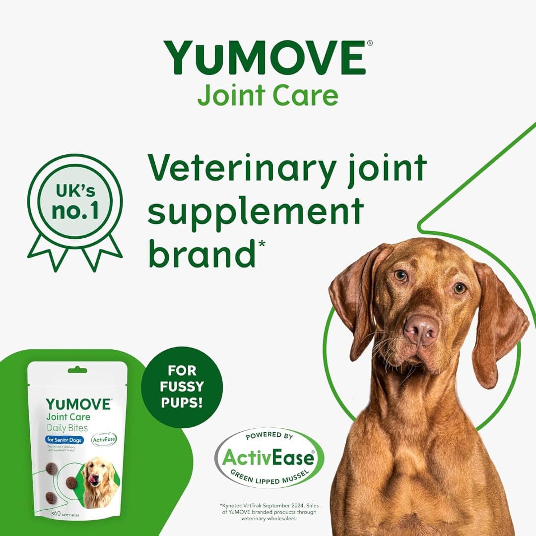 Support your senior dog’s mobility and joint comfort with YuMOVE Joint Care Daily Bites for Senior Dogs. Using the original high-strength YuMOVE Senior joint formula, these tasty daily chews are designed to soothe stiffness, support joint structure and help maintain comfortable movement in older dogs.